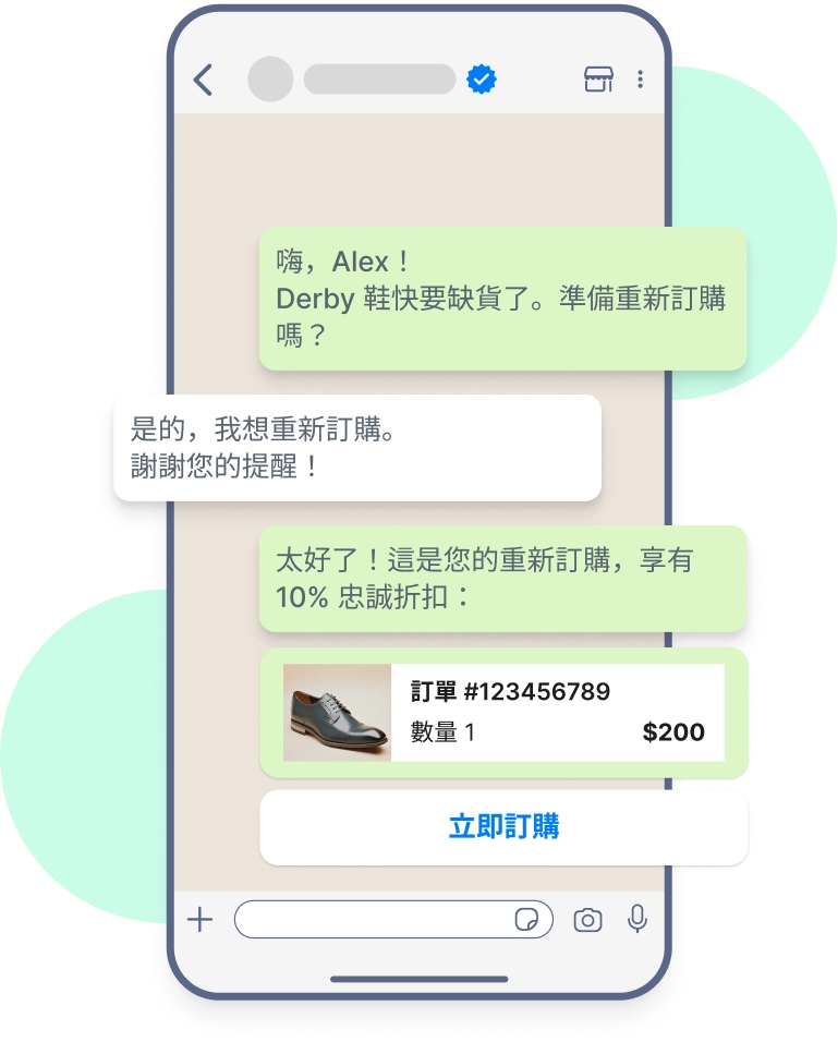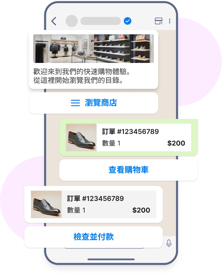 讓客戶在 WhatsApp 對話中即可發現、選擇和購買產品,從而推動更多銷售。