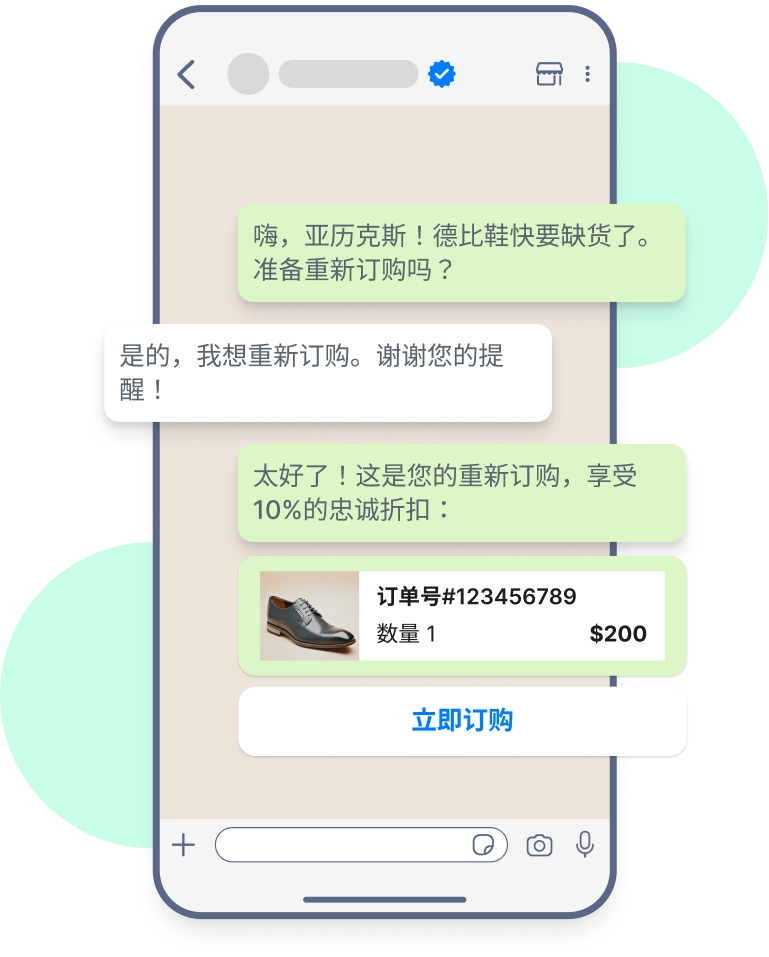 让客户在 WhatsApp 对话中即可发现、选择和购买产品,从而推动更多销售。