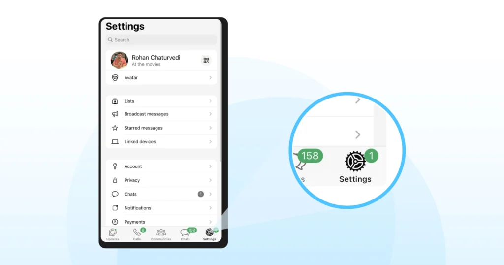 1. Open WhatsApp and tap Settings in the bottom-right corner.