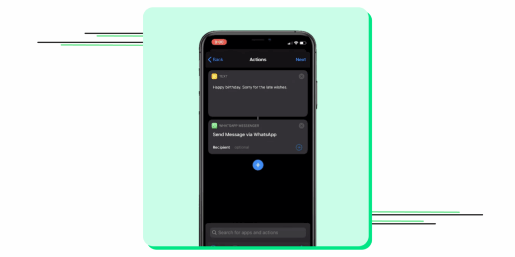 iPhone users do not have to rely on an API or third-party tool to schedule responses via WhatsApp for their customers. With the “Shortcut” app, you can automate a fair share of WhatsApp messages and send them at the right time to your prospects.