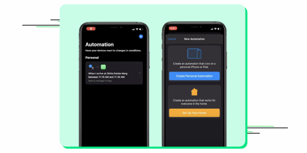 3. Set Your Trigger: Choose the blue “+” sign to initiate new automation. Click on create personal automation to set up a new WhatsApp schedule for customers.
