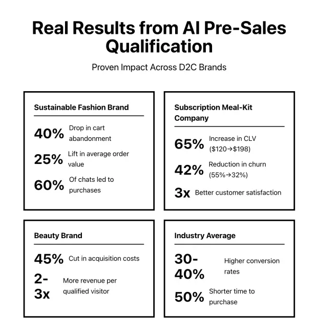 D2C companies using AI qualification often see 30–40% higher conversions among high-value segments and 2–3x more revenue per qualified visitor.