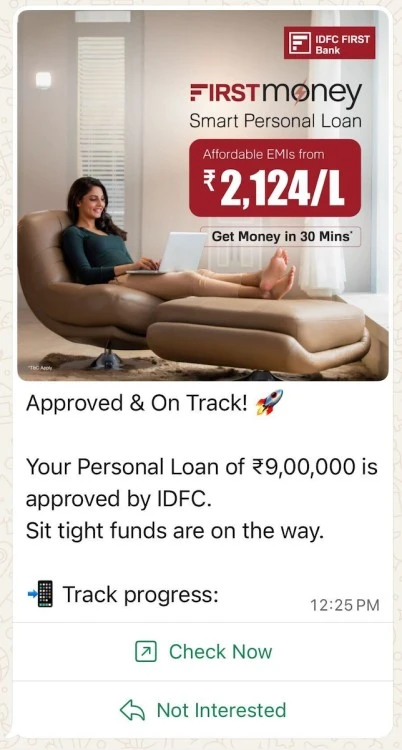Solution: Send interactive WhatsApp messages with product images and buy-now buttons. For urgent deals or abandoned cart nudges, trigger SMS if WhatsApp is undelivered.