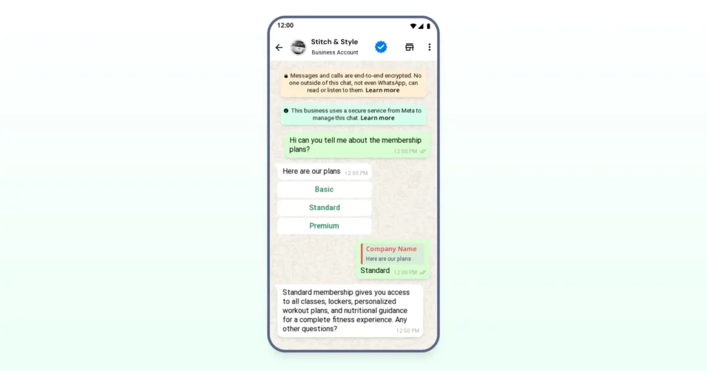 Businesses can share brochures as PDFs, product demos as short videos, price sheets as images, or even use interactive buttons to direct prospects to a booking page or case study.