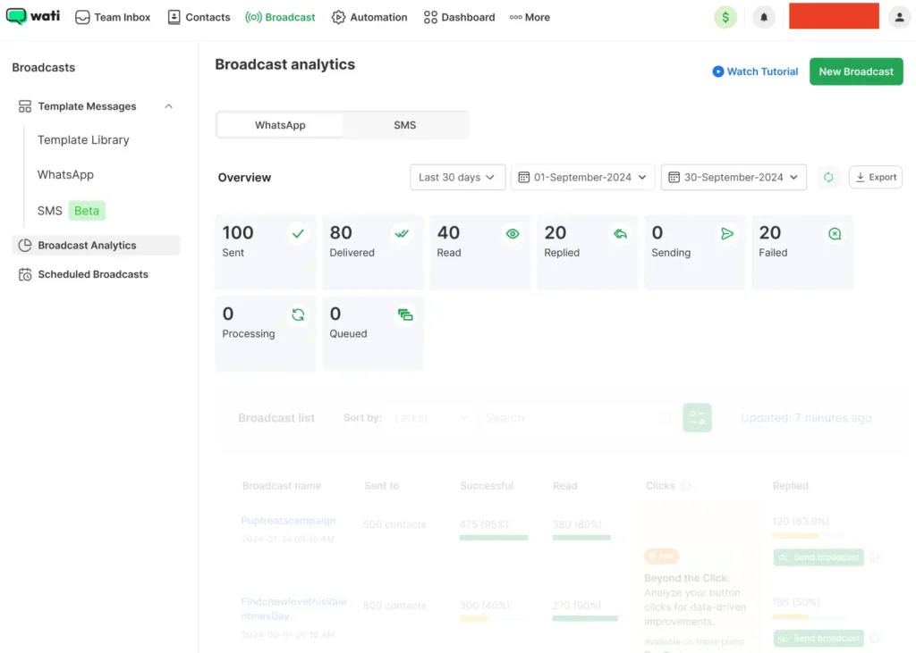 • The best strategy is to combine both with Wati’s WhatsApp Broadcast and SMS Marketing feature for complete coverage.