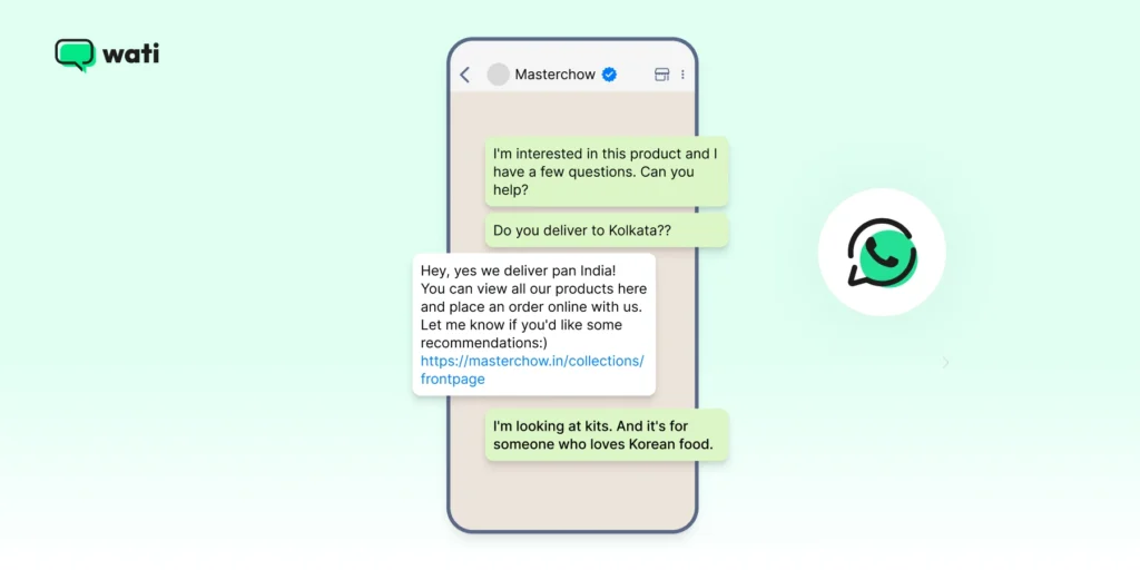 Wati blends automation with human support. Chatbots can handle common queries, while more complex ones can be handed to a live agent in seconds.