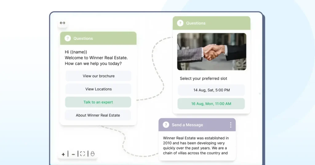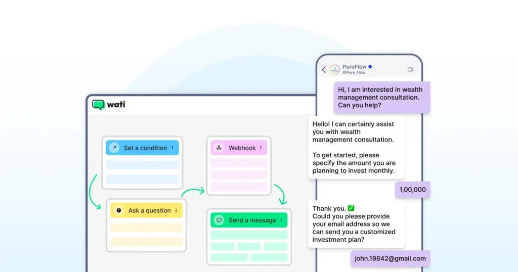 Wati’s no-code chatbot builder allows teams to design automation flows without developers. Bots can: